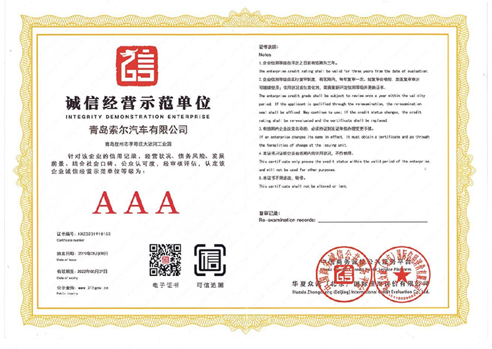 青島索爾汽車有限公司 產品碳足跡證書 公示